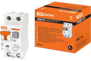 ДИФФЕРЕНЦИАЛЬНЫЙ АВТОМАТ 2P C40 100мА АВДТ-63 TDM (Отключение тока утечки и тока перегрузки)