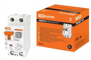 ДИФФЕРЕНЦИАЛЬНЫЙ АВТОМАТ 2P C50 30мА АВДТ-63 TDM (Отключение тока утечки и тока перегрузки)