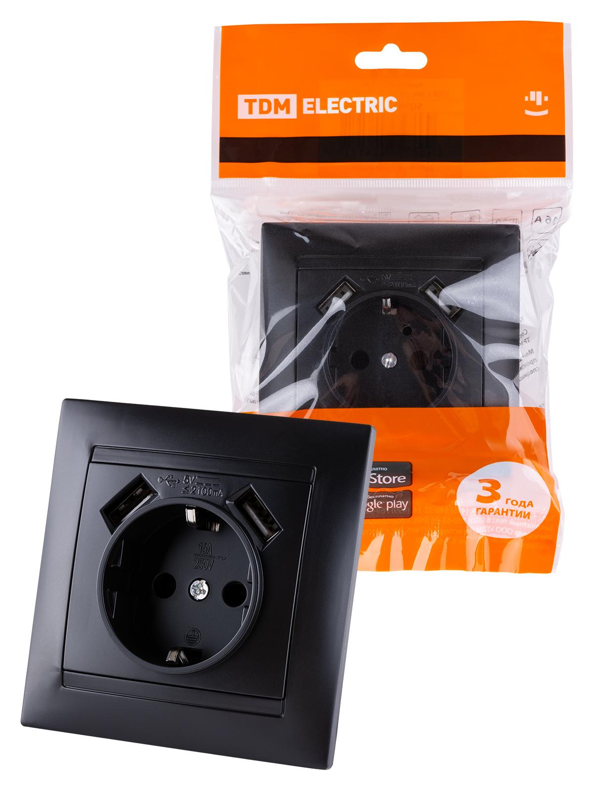 РОЗЕТКА СП 1М З/К ГРАФИТ ЛАМА 2хUSB 2,1A TDM