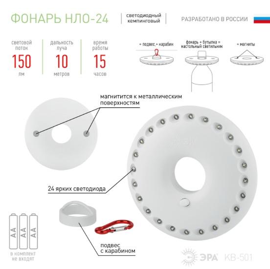 ФОНАРЬ КЕМПИНГ 3хАА ЭРА KB-501 НЛО-24 24xLED