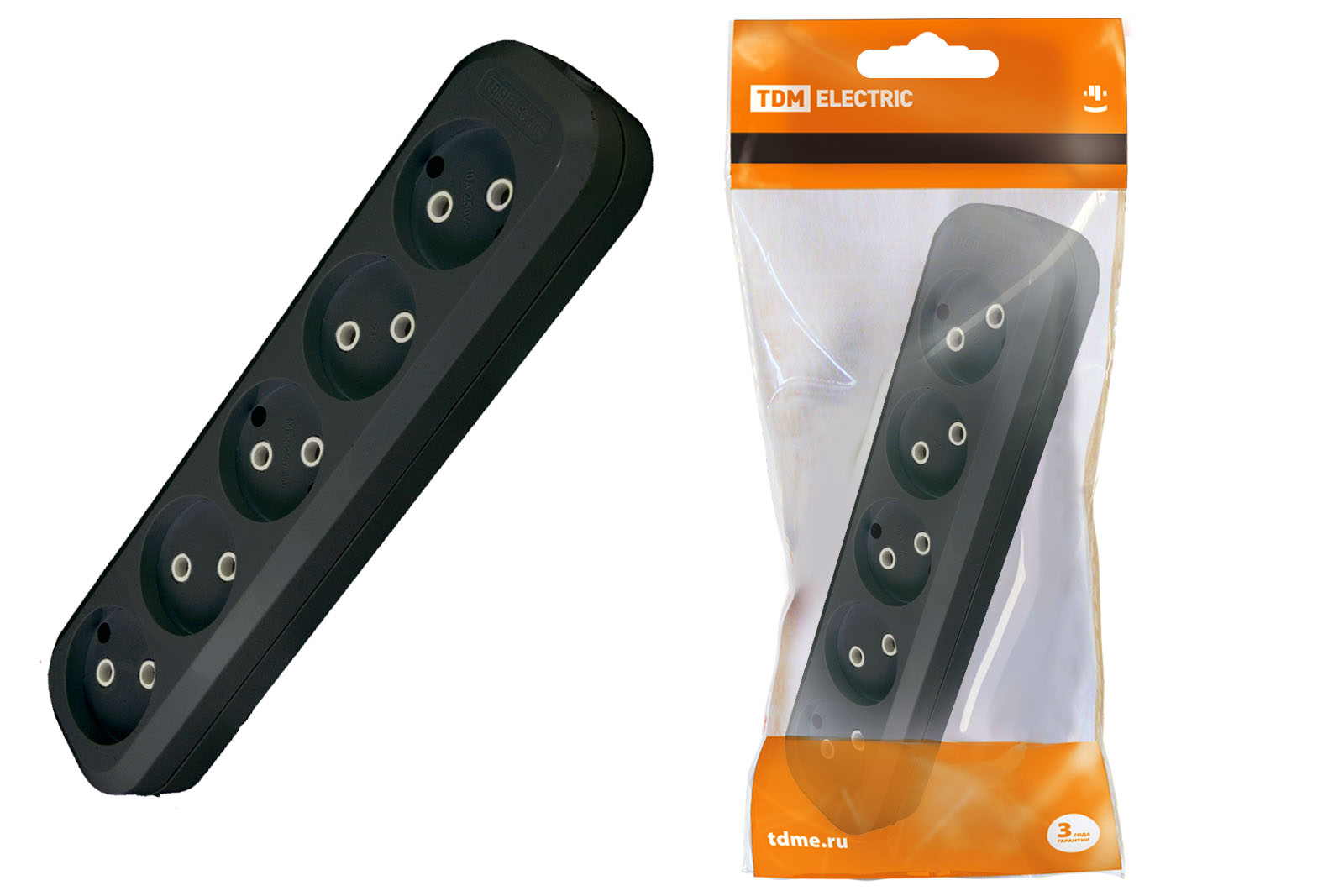 РОЗЕТКА КАБЕЛЬНАЯ 220В 5Р 10А ЧЕРНАЯ TDM
