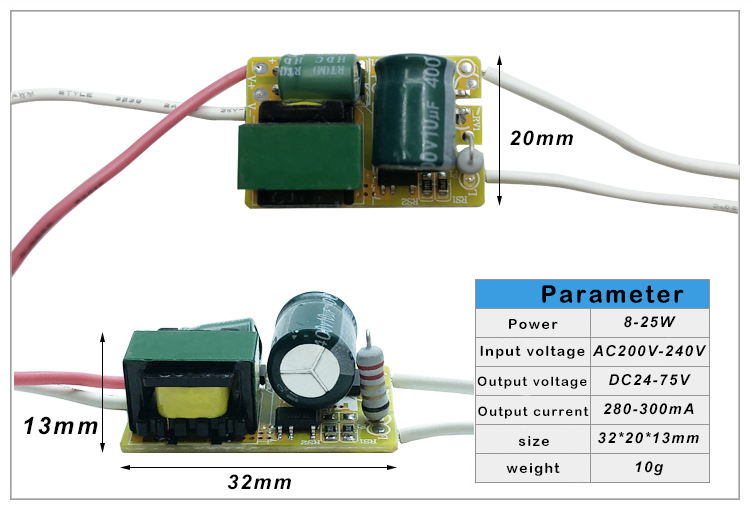 ДРАЙВЕР LED AC~220В>DC 300mA 24.0V-75.0V, 8W-24W, не диммируемый, без корпуса