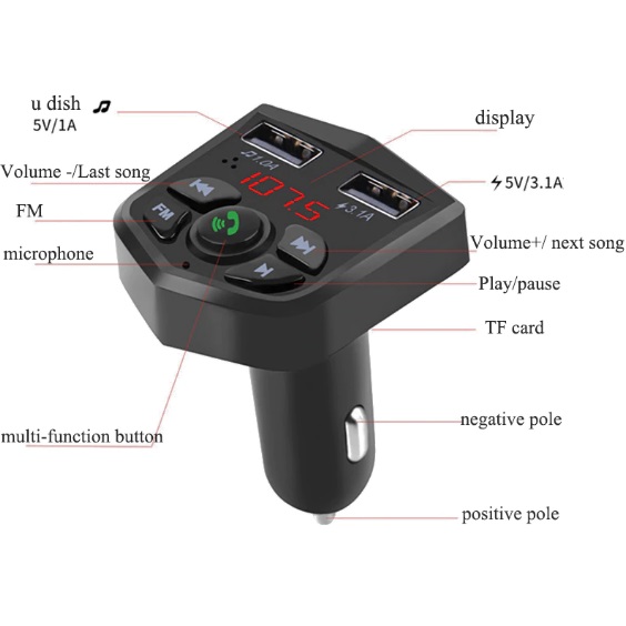 Автомобильный FM модулятор Bluetooth, USB3.0 15W, USB2.0, MicroSD Elistooop 0509