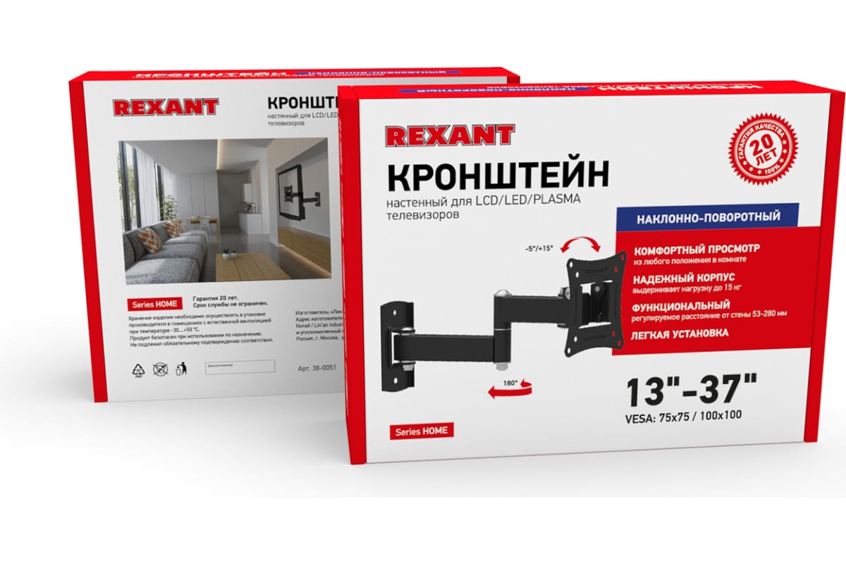 КРОНШТЕЙН ЖК 10-27" поворотно-наклонный, VESA 75*75 100*100 REXANT