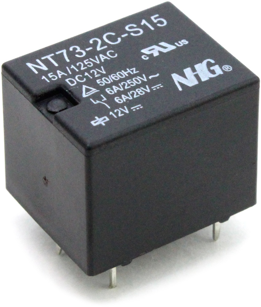 РЕЛЕ 12VDC, Ш15.0*Д19.0*В15.0мм, Ток коммутации 6А NT73-2C-S15 5pin