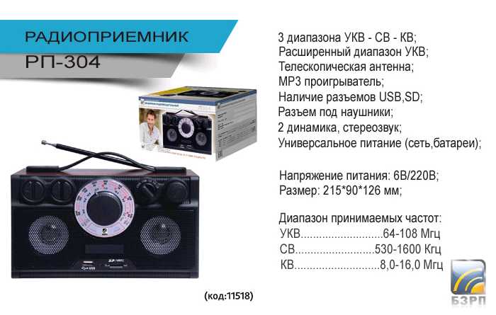 РАДИОПРИЕМНИК БЗРП РП-304, USB, SD