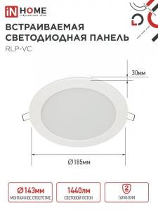 СВЕТИЛЬНИК LED ВСТРАИВАЕМЫЙ 18ВТ 4000К D=185(уст D143) 1440Лм 230В RLP-VC круг белый IP40 InHome
