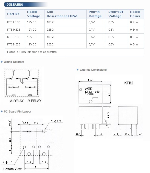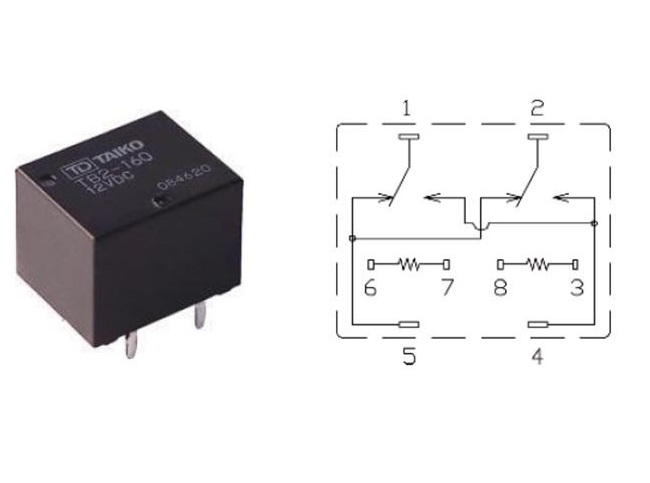 РЕЛЕ 12VDC, Ш14.0*Д17.5*В13.0мм, Ток коммутации 25A TAIKO TB2-160-12VDC AUTO два реле в одном корпусе 8pin Pull-in