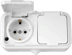 РОЗЕТКА ОП 2М С/З БЕЛАЯ С КРЫШКОЙ ПРАЛЕСКА IP54