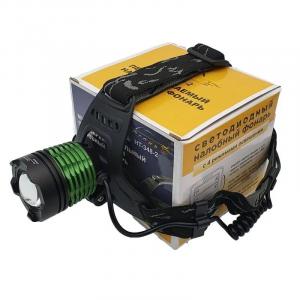 ФОНАРЬ налобный аккумуляторный ОГОНЬ HT-348-2 (две яркости + 2аккумулятора + ЗУ, 4режима, син.+бел., zoom)