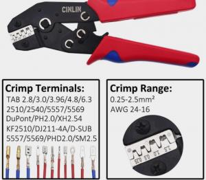 КРИМПЕР ДЛЯ ИЗОЛИРОВАННЫХ КЛЕММ 0.25-0.5мм2, 1.0-1.5мм2, 2.5мм2 SN-02C