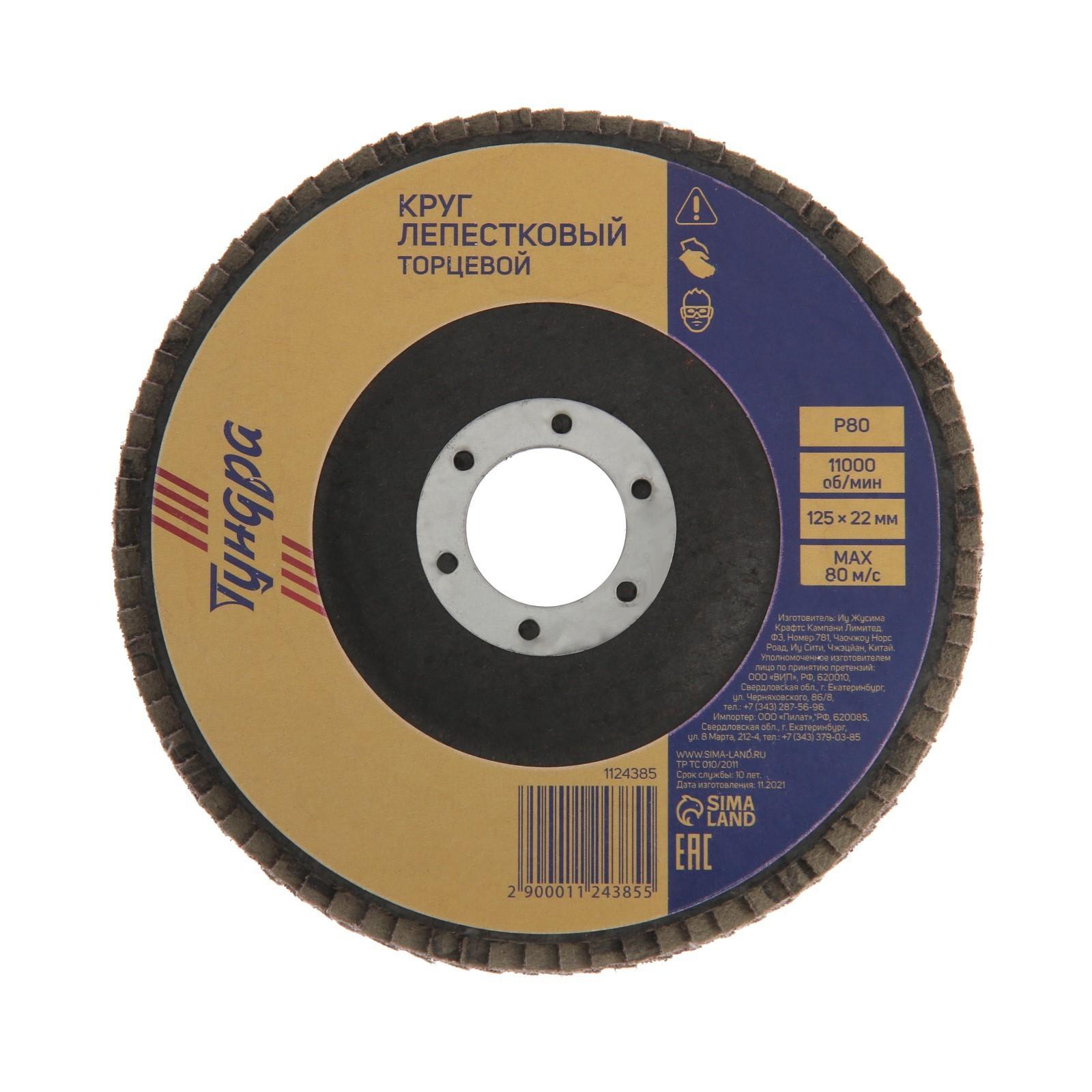 КРУГ ЛЕПЕСТКОВЫЙ ТОРЦЕВОЙ ДЛЯ УШМ 125*22мм Р80 ТУНДРА
