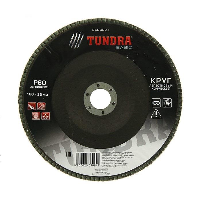 КРУГ ЛЕПЕСТКОВЫЙ ТОРЦЕВОЙ конический ДЛЯ УШМ 180*22мм Р60 TUNDRA