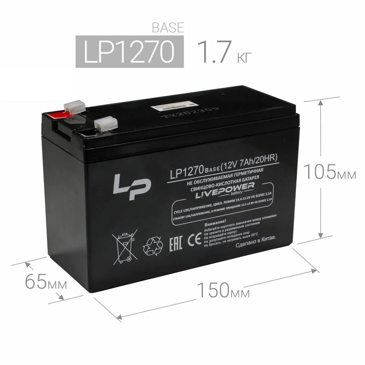 АККУМУЛЯТОР 12.0V 7.0Ah Live-Power LP-1270 Base