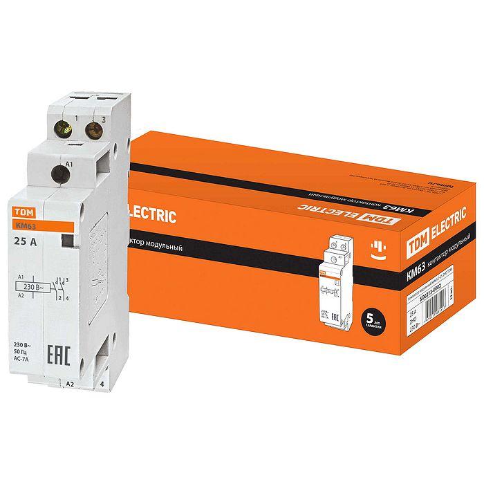 КОНТАКТОР 25А ~230VAC МОДУЛЬНЫЙ TDM КМ63/2-25 (2НО 25А 400В) Напряжение катушки управления:230В AC