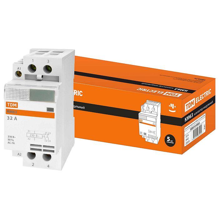 КОНТАКТОР 32А ~230VAC МОДУЛЬНЫЙ TDM КМ63/2-32 (2НО 32А 400В) Напряжение катушки управления:230В AC