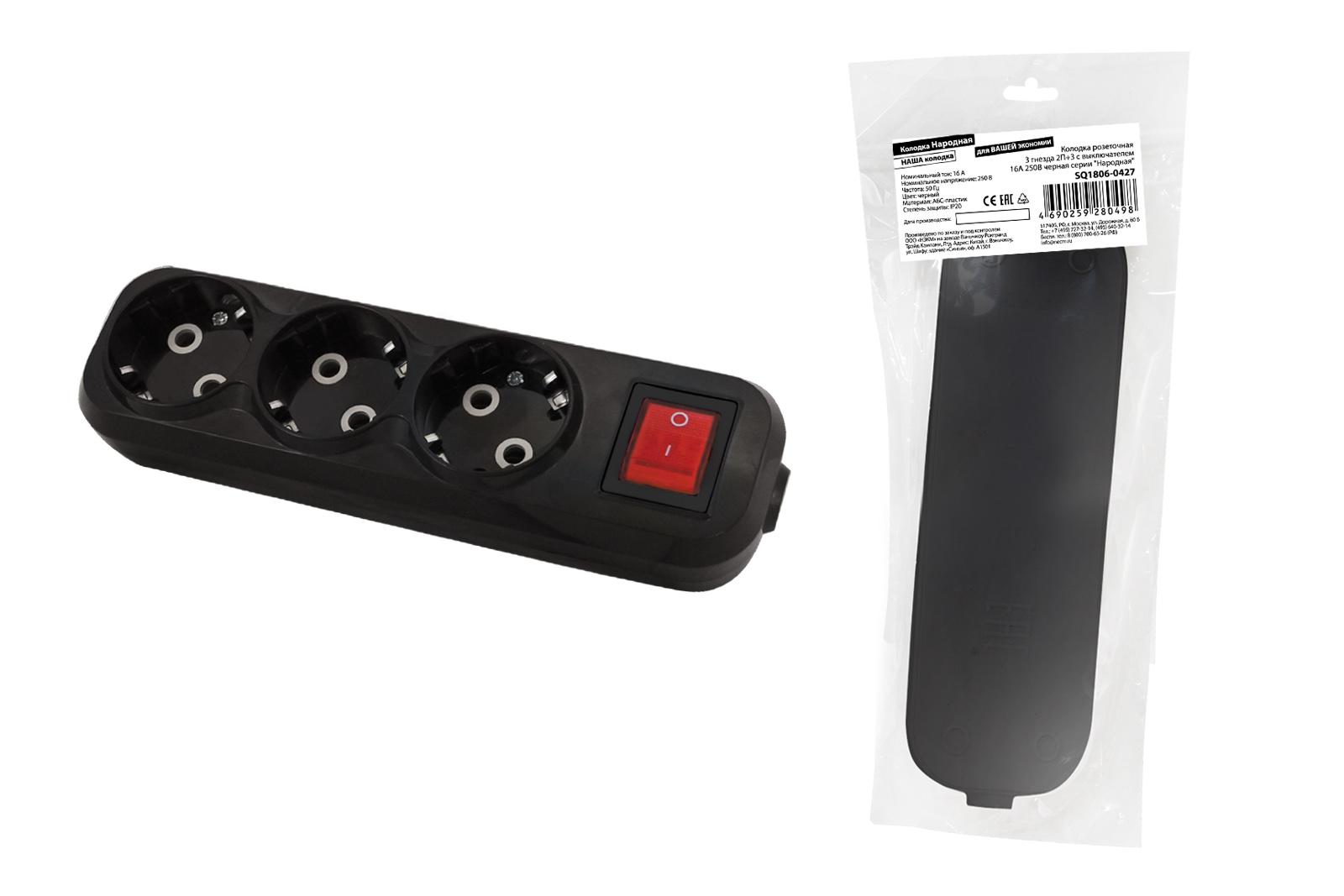 РОЗЕТКА КАБЕЛЬНАЯ 220В 4E 16А С ВЫКЛЮЧАТЕЛЕМ ЧЕРНАЯ TDM