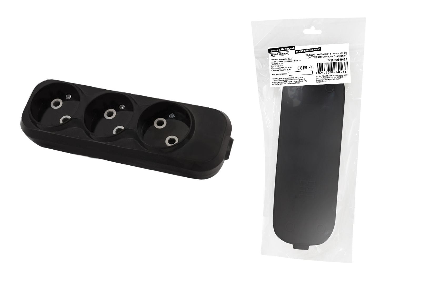 РОЗЕТКА КАБЕЛЬНАЯ 220В 3Р 10А ЧЕРНАЯ TDM