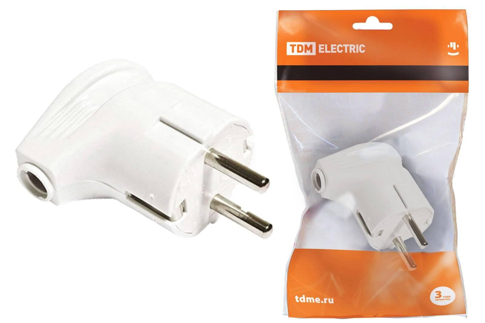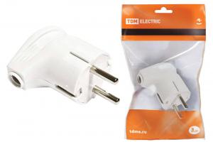 ВИЛКА ШТЕПСЕЛЬНАЯ 220В 16A УГЛОВАЯ БЕЛАЯ З/К TDM