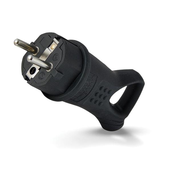 ВИЛКА ШТЕПСЕЛЬНАЯ 220В 16A УГЛОВАЯ КАУЧУК ЗАЗЕМЛЯЮЩИЙ КОНТАКТ С УШКОМ ЧЕРНАЯ УНИВЕРСАЛ
