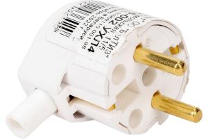 ВИЛКА ШТЕПСЕЛЬНАЯ 220В 16A УГЛОВАЯ БЕЛАЯ З/К ВИТЕБСК КЕМБРИК