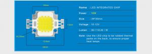 СВЕТОДИОД БЕЛЫЙ- 10ВТ-6000К 900-1100LM 1000mA 10-12В