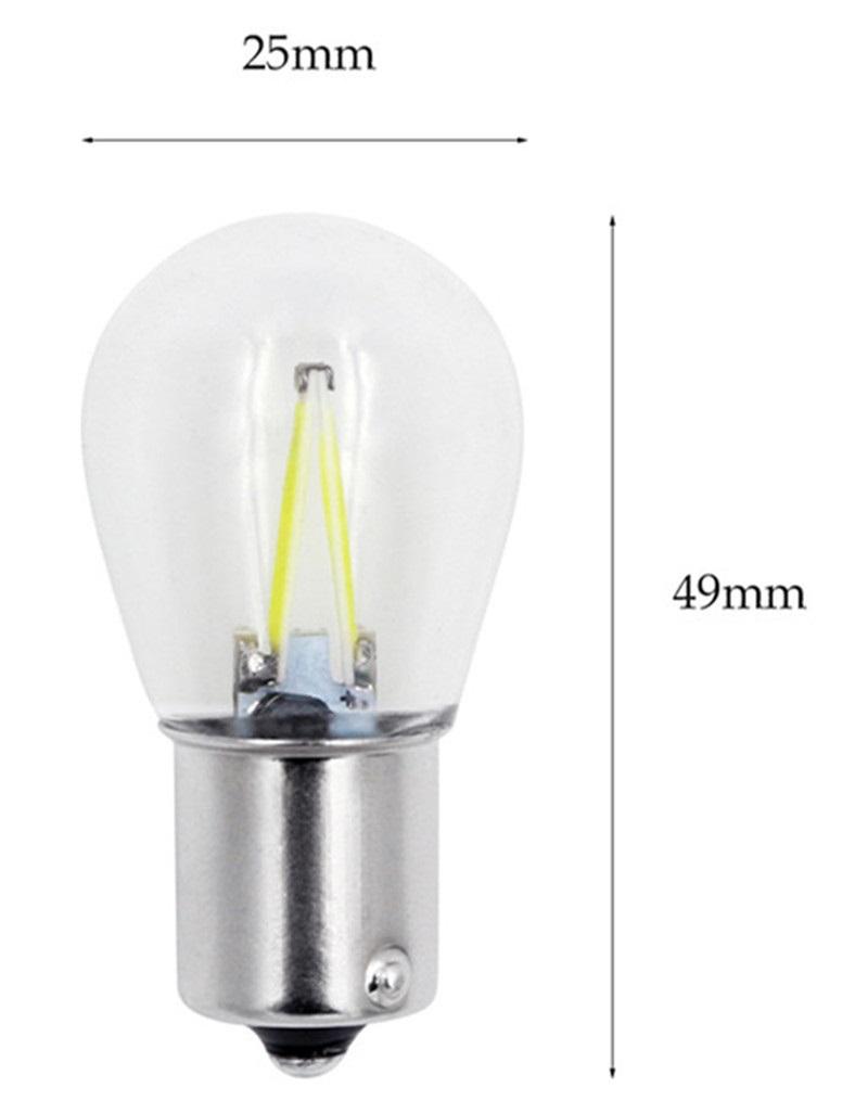 LED - ЛАМПА BA15S БЕЛАЯ 2ШТ-ПАРА 2LED COB СВЕРХЯРКИЕ, В КОЛБЕ (1КОНТ-1156) 12V