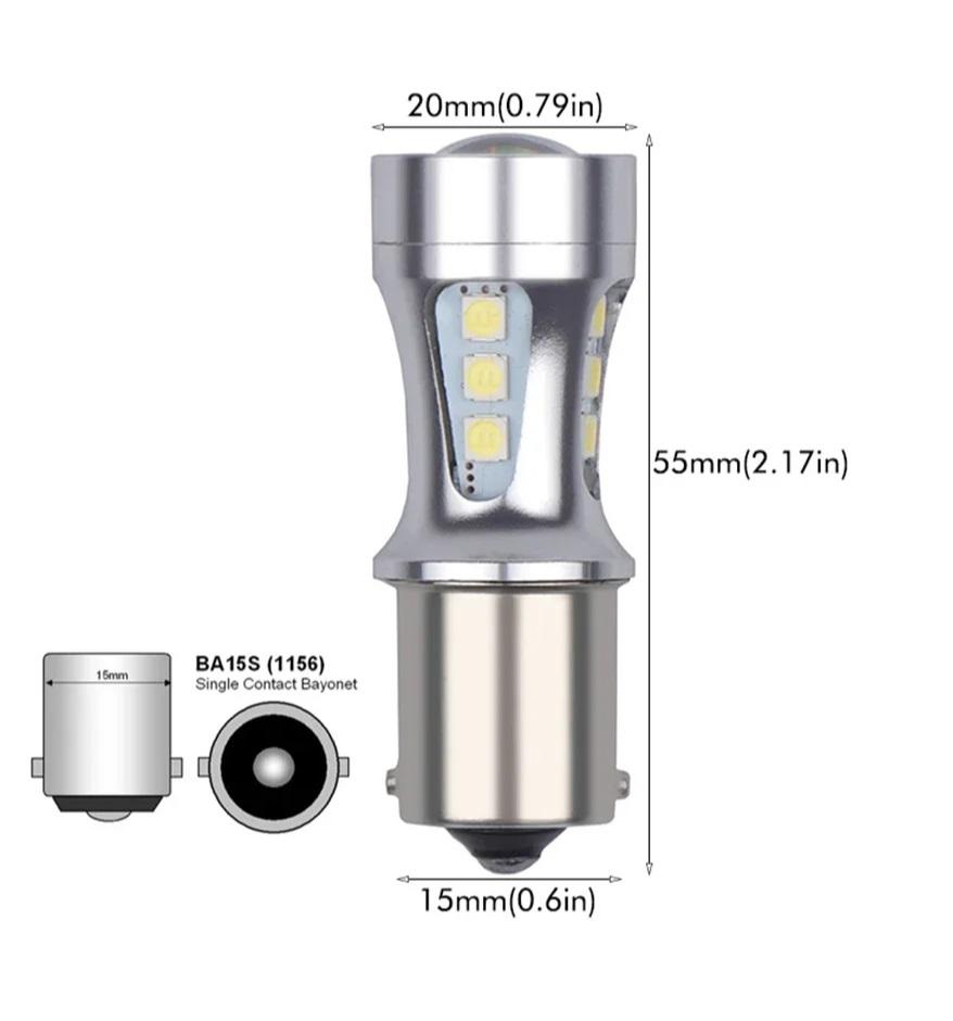 LED - ЛАМПА BA15S БЕЛАЯ 2ШТ-ПАРА 12LED СВЕРХЯРКИЕ, В КОЛБЕ (1КОНТ-1156) 12V