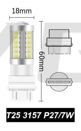 LED - ЛАМПА БЕЛАЯ 2ШТ-ПАРА (2КОНТ-3157) W27-7W T25 6000K 33SMD