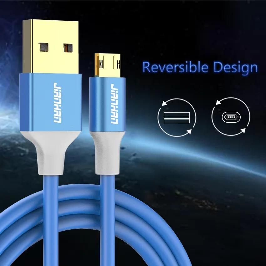 КАБЕЛЬ РЕВЕРСИВНЫЙ USB AM(Reverse)-MicroBM(Reverse) 1,0M V2.0 JianHan резиновый голубой