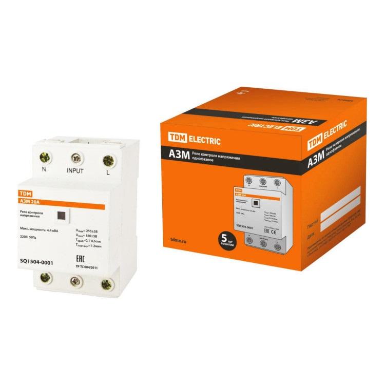РЕЛЕ НАПРЯЖЕНИЯ НА DIN-РЕЙКУ АЗМ 20А-220В TDM