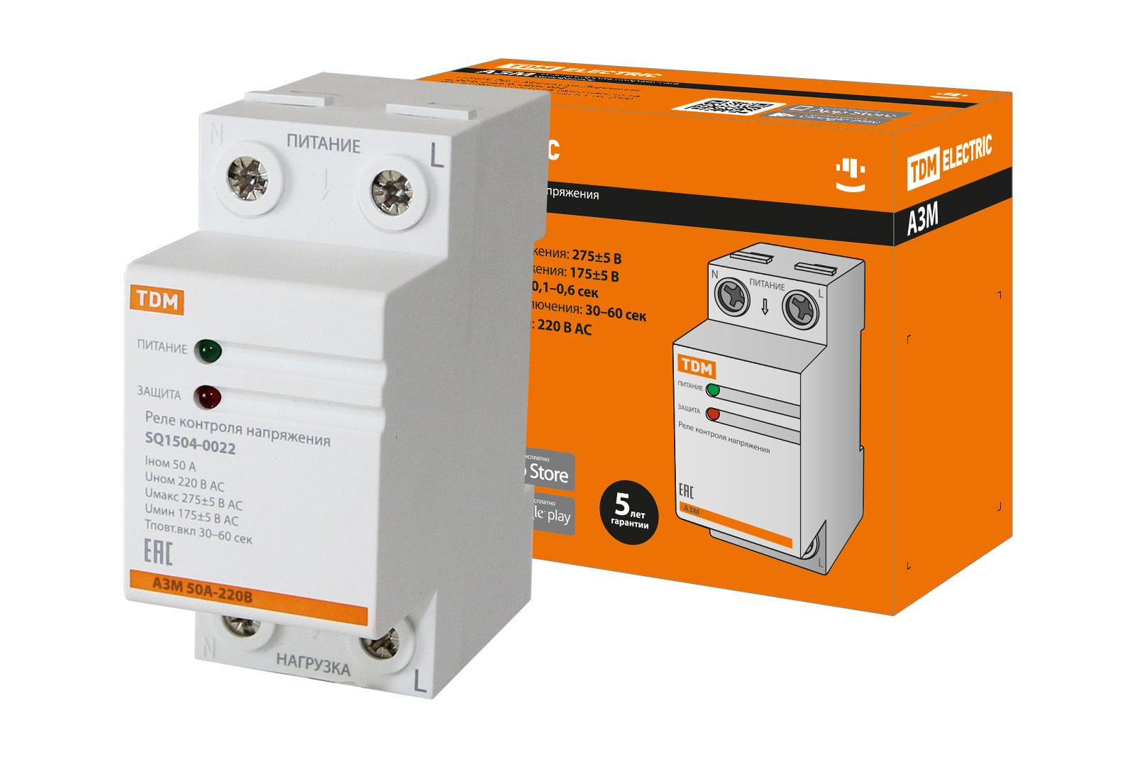 РЕЛЕ НАПРЯЖЕНИЯ НА DIN-РЕЙКУ АЗМ 50А-220В TDM