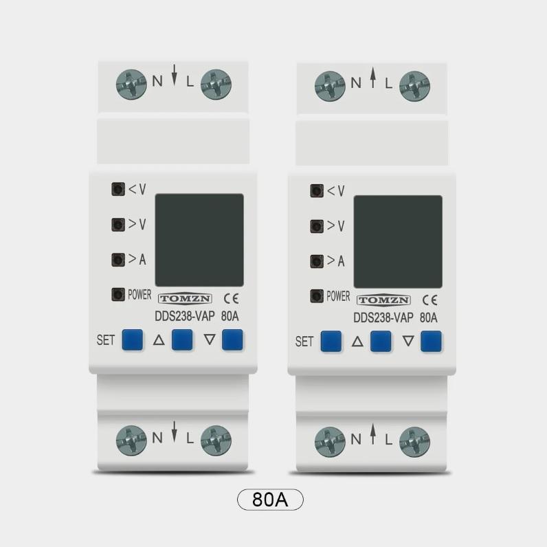 РЕЛЕ НАПРЯЖЕНИЯ НА DIN-РЕЙКУ DDS238-VAP 80A, вход с верху