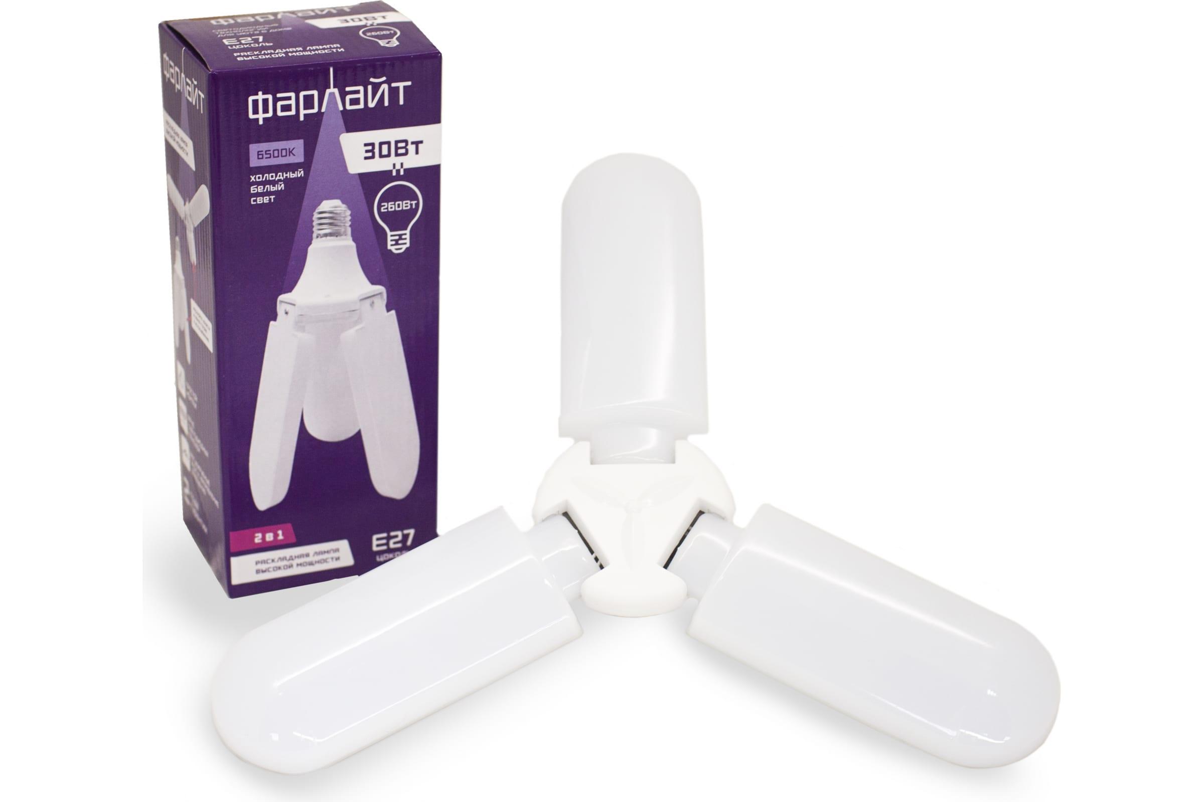 ЛАМПА LED 220V E27 ТРАНСФОРМЕР 45.0W 6500K ФАРЛАЙТ Т80-3, 3-ЛОПАСТИ ПОВОРОТНЫЕ (45W=400W)