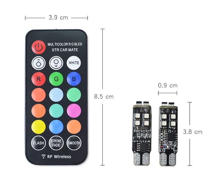 LED - ЛАМПА RGB 2ШТ-ПАРА T10 DC12V с RF-пультом ДУ(ПДУ)