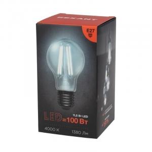 ЛАМПА LED 220V E27 ФИЛАМЕНТ 11.5W 4000K A60 REXANT ПРОЗРАЧНАЯ