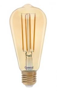 ЛАМПА ДЕКОРАТИВНАЯ 220V 6W ФИЛАМЕНТ 1800K E27 ST64 300Лм GENERAL DSS