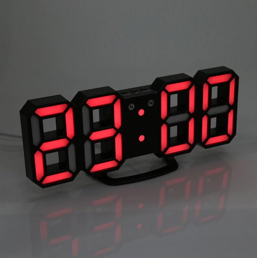 ЧАСЫ LED (220В/USB/CR2032) E5M1 КРАСНЫЕ/черный корпус