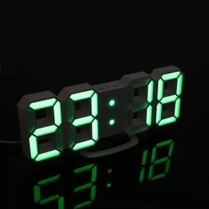 ЧАСЫ LED (220В/USB/CR2032) E5M1 ЗЕЛЕНЫЕ/белый корпус