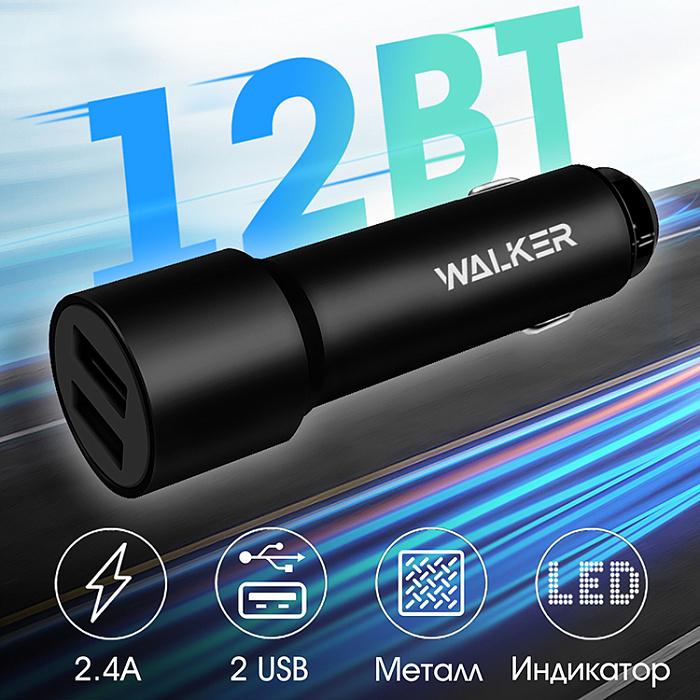 АДАПТЕР ПИТАНИЯ В ПРИКУРИВАТЕЛЬ 5.0V 2.4A USB*2 WALKER WCR-22 ЧЕРНЫЙ