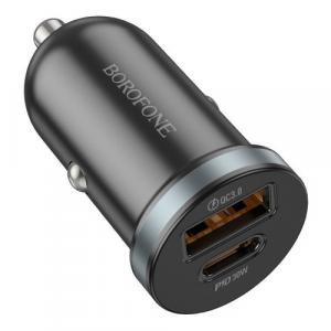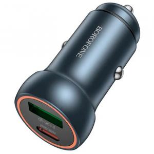 АДАПТЕР ПИТАНИЯ В ПРИКУРИВАТЕЛЬ 5.0V 3.0A USB(F)*1 + Type-C(F), QC3.0 18W BOROFONE BZ32B Metal Gray