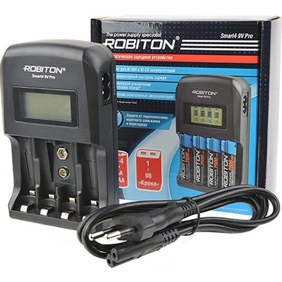 ЗАРЯДНОЕ УСТРОЙСТВО ОТ СЕТИ 220В ROBITON Smart4 9V Pro Ni-MH, Ni-Cd 1-4 R03/R6, 1 "Крона", дисплей, 16972