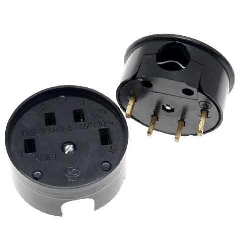 РАЗЪЕМ СИЛОВОЙ 220В РШ-ВШ 32А НАРУЖНАЯ УСТАНОВКА ВИЛКА+РОЗЕТКА 2Р+РЕ ЧЕРНЫЙ карболитовый