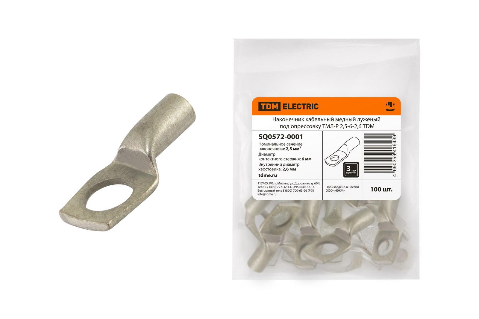 НАКОНЕЧНИК D6.0mm-002.5mm2 ТМЛ-Р 2,5-6-2,6 МЕДНЫЙ ЛУЖЕНЫЙ с обратным радиусом контактной площадки