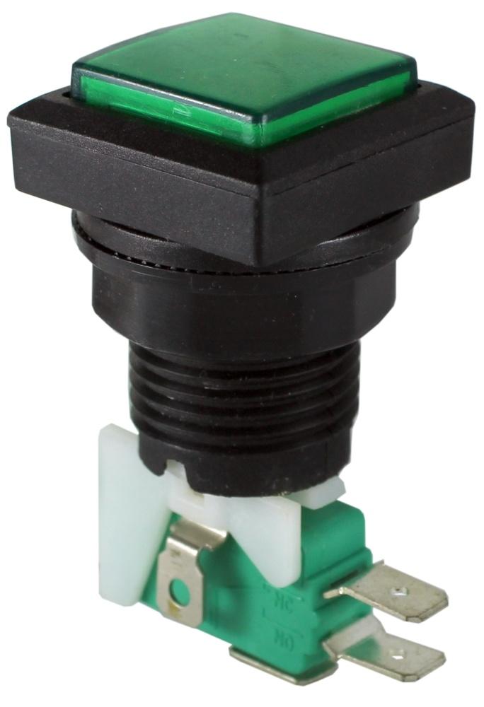 КНОПКА Б/Ф НР/НЗ ЗЕЛЕНАЯ PBS 008 33*33ММ УСТАН. D=28ММ