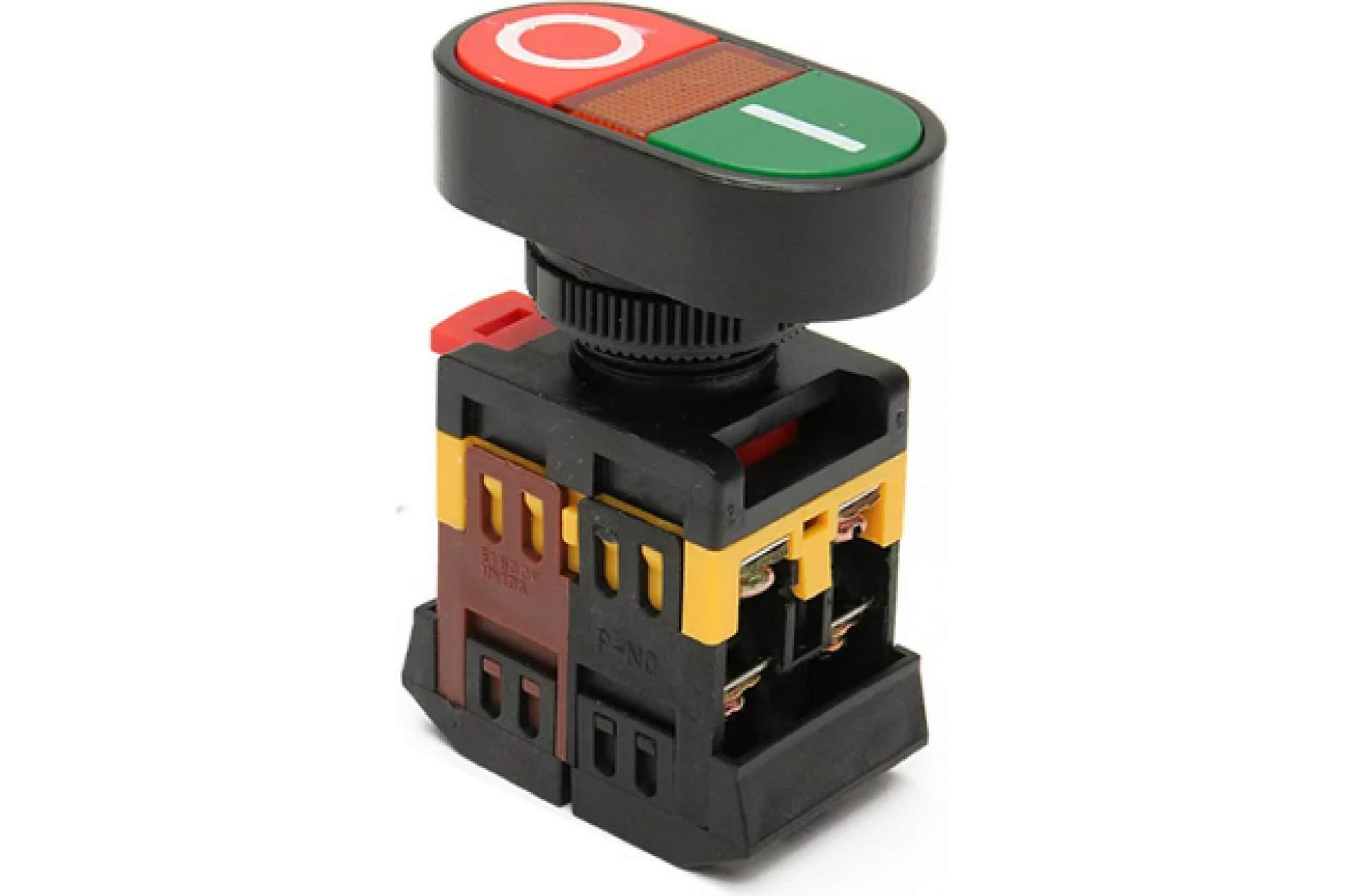 КНОПКА двойная MPD2-11G (зеленая/красная) (LED) в сборе d22мм/220В (I/O) линза зеленая TDM