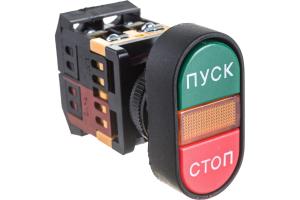 КНОПКА двойная APBB-22N d22мм неон/230В 1з+1р TDM Надпись:"Пуск - Стоп"