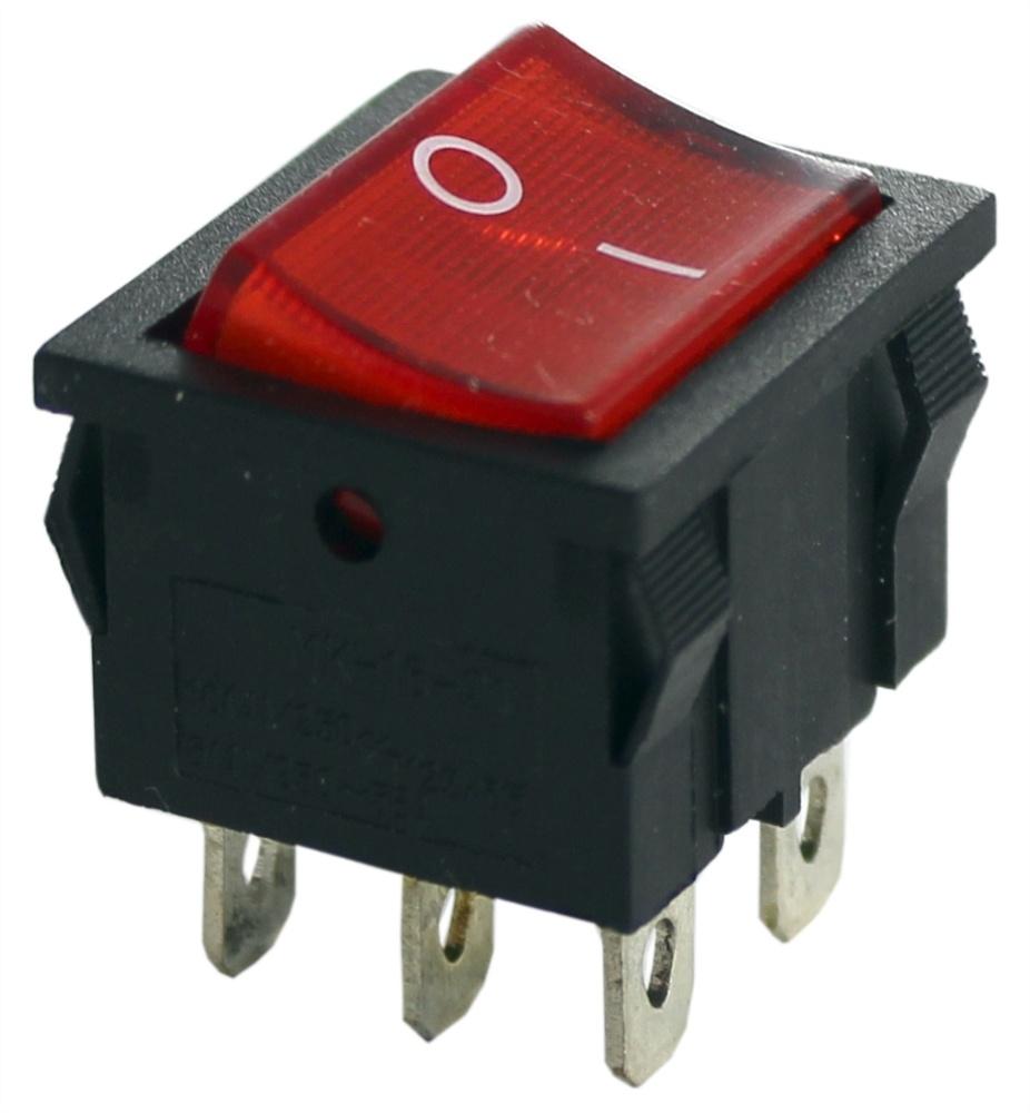 ПЕРЕКЛЮЧАТЕЛЬ УСТ.:22*20мм 2-ПОЛОЖЕНИЯ С/Ф 6PIN ON-OFF 10A SWR-MIRS-202-4 КРАСНЫЙ С ПОДСВЕТКОЙ