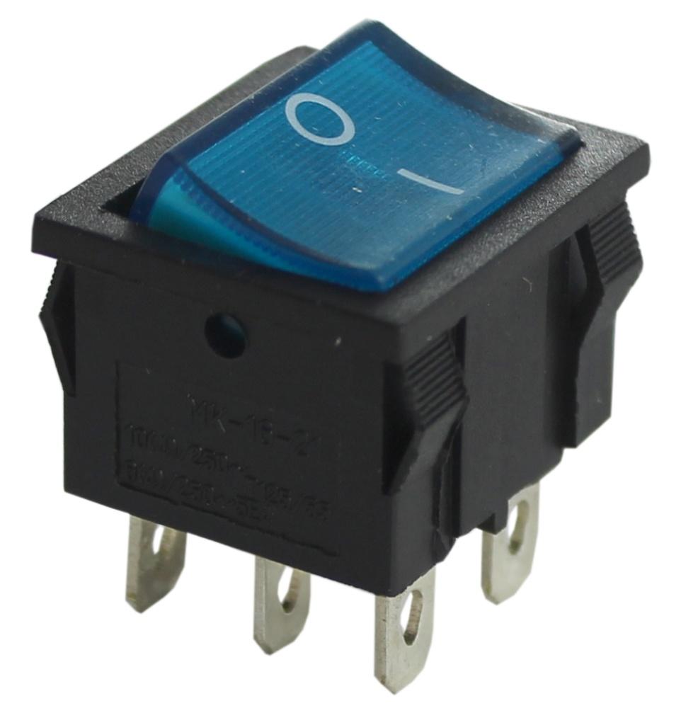 ПЕРЕКЛЮЧАТЕЛЬ УСТ.:22*20мм 2-ПОЛОЖЕНИЯ С/Ф 6PIN ON-OFF 10A SWR-MIRS-202-4 СИНИЙ С ПОДСВЕТКОЙ
