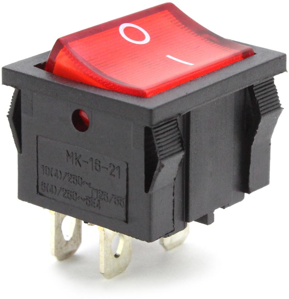 ПЕРЕКЛЮЧАТЕЛЬ УСТ.:22*20мм 2-ПОЛОЖЕНИЯ С/Ф 4PIN ON-OFF 10A MIRS 201-4C3 КРАСНЫЙ С ПОДСВЕТКОЙ